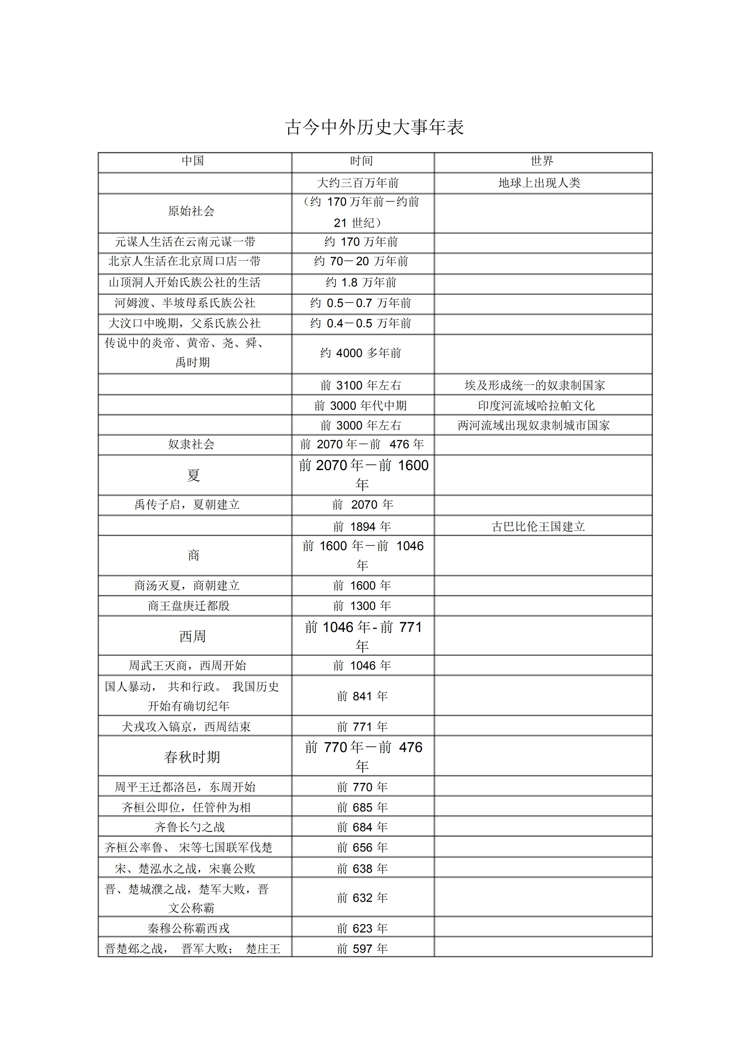 中国历史年代表及世界历史大事年表 松鼠文库